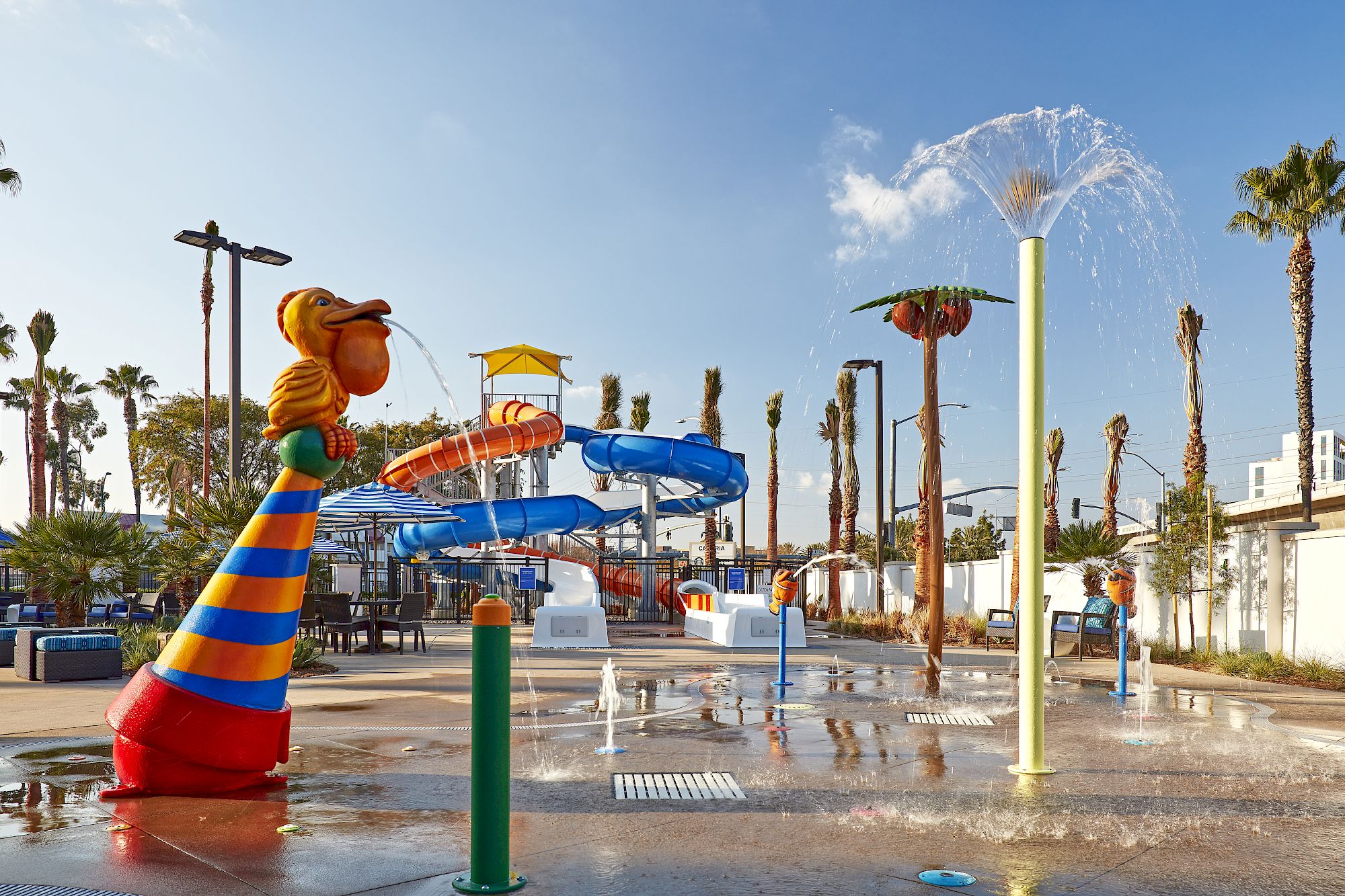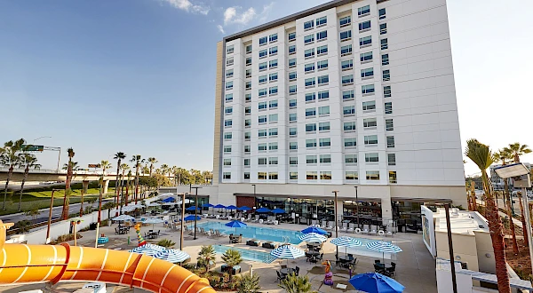 Anaheim Resort Suites offers the ultimate convenience in the Anaheim Resort District. Located moments from Disneyland®, the Convention Center, and major sports venues, guests can walk to the parks or catch the ART shuttle right outside. Perfect for families and groups, the hotel features a 30,000 sq. ft. water park, pools, and an outdoor movie wall.